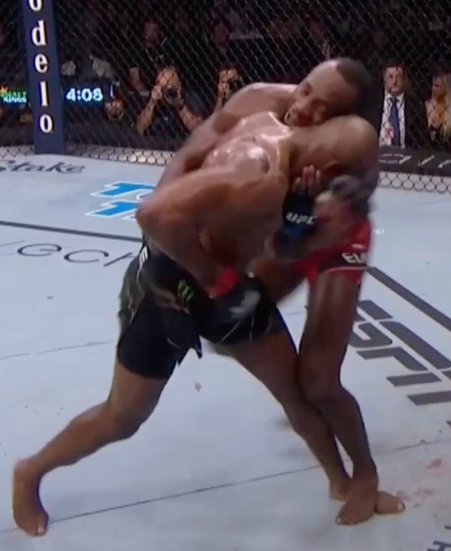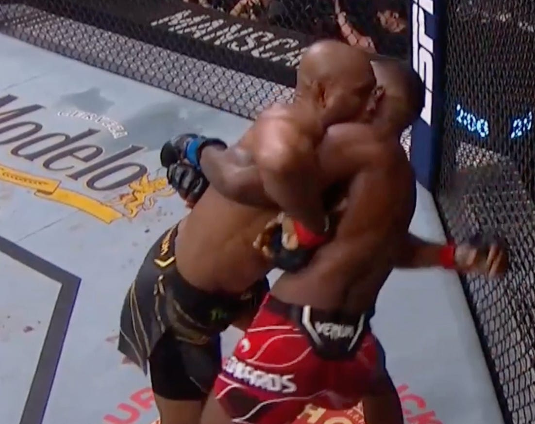Despite the wrestling pedigree of Kamaru Usman, Leon Edwards was much more successful in the clinch. In open space, Edwards would enter a clinch to hit knees, or punches and elbows off of the break.