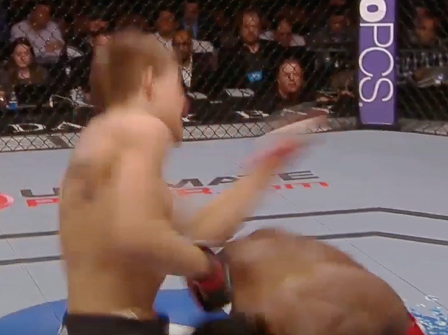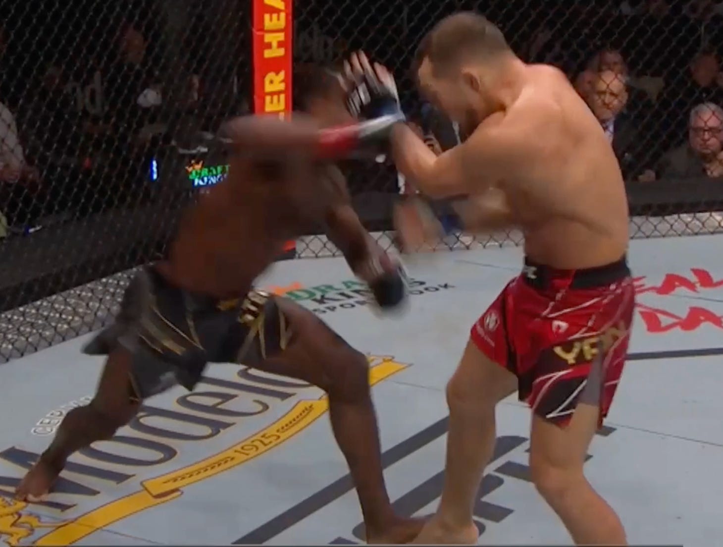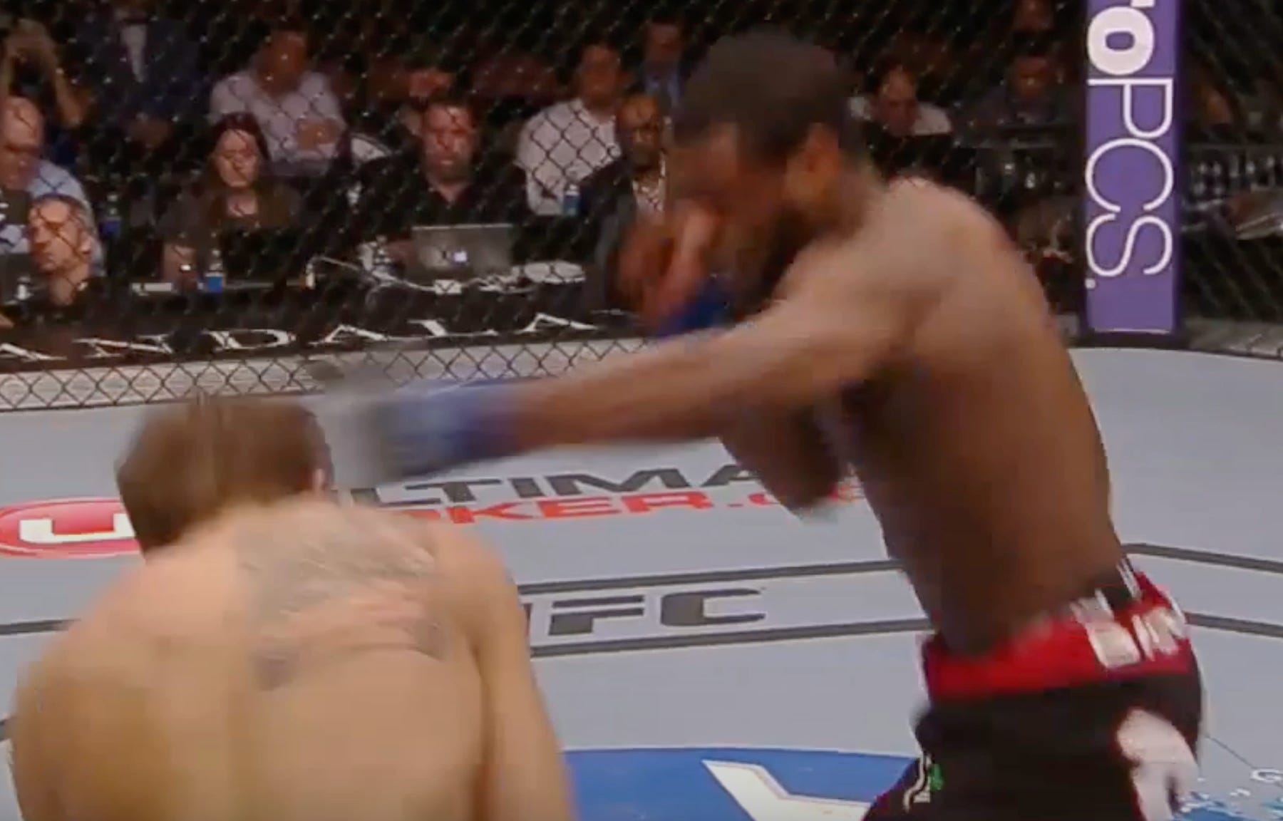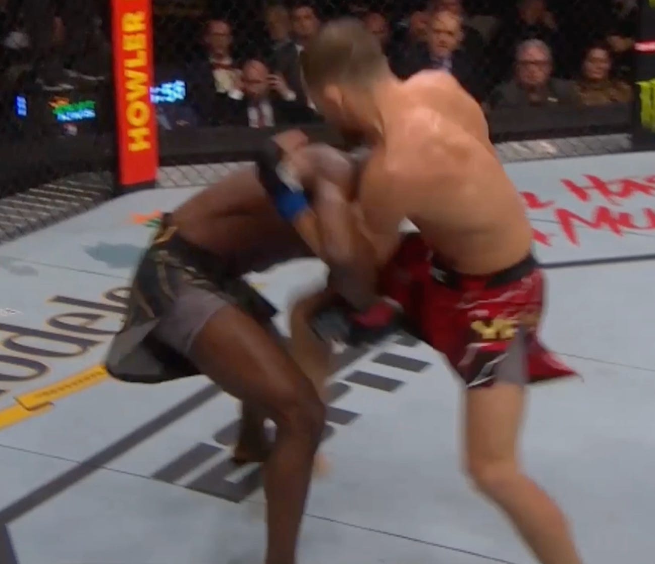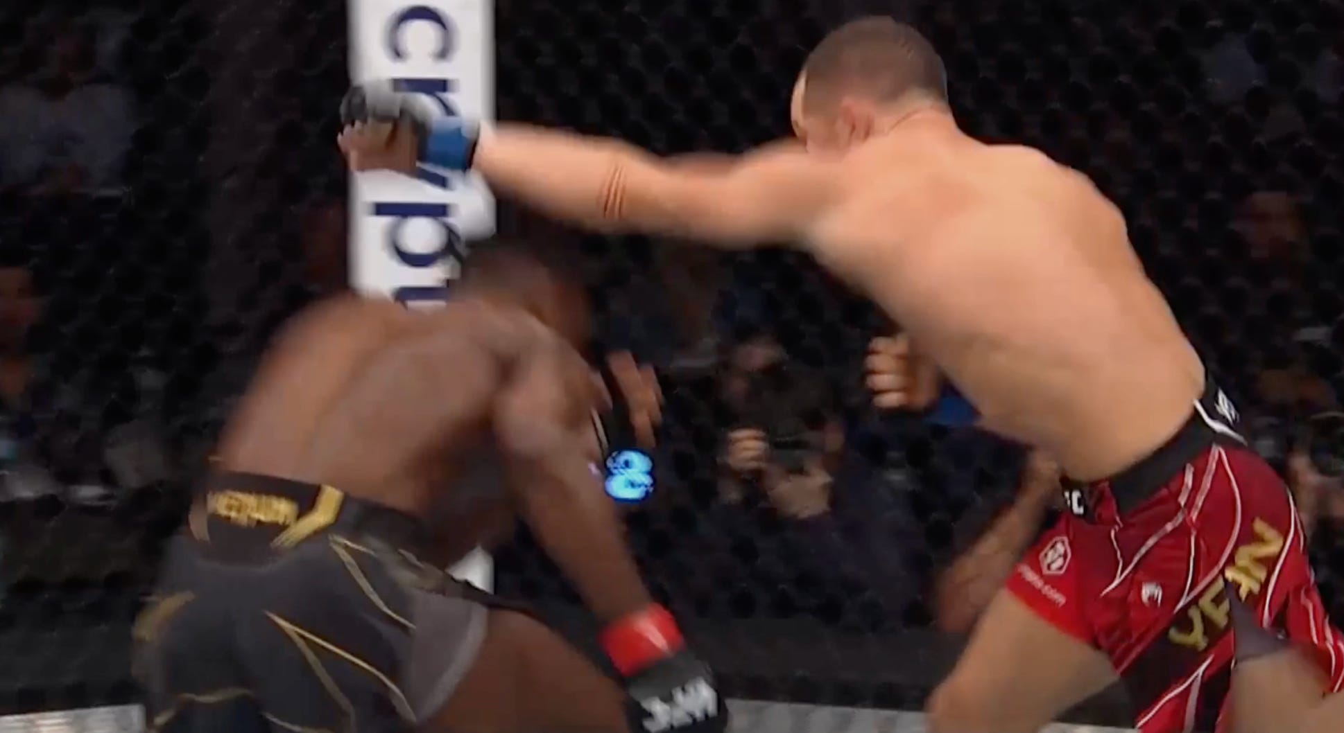 And pushes Sandhagen to the fence . . .