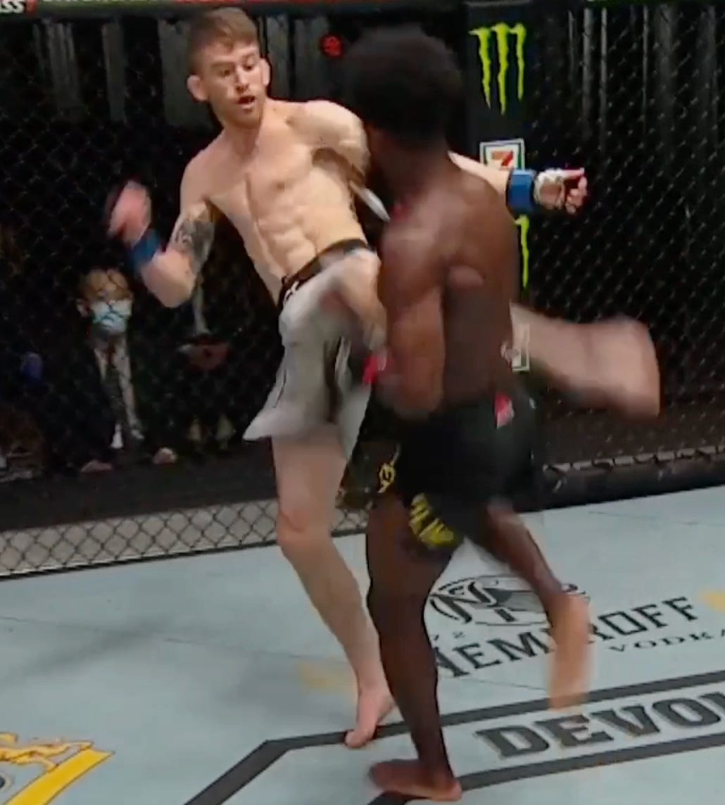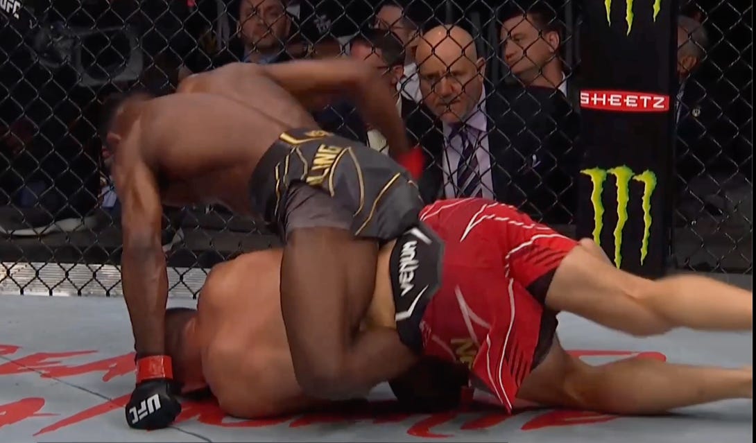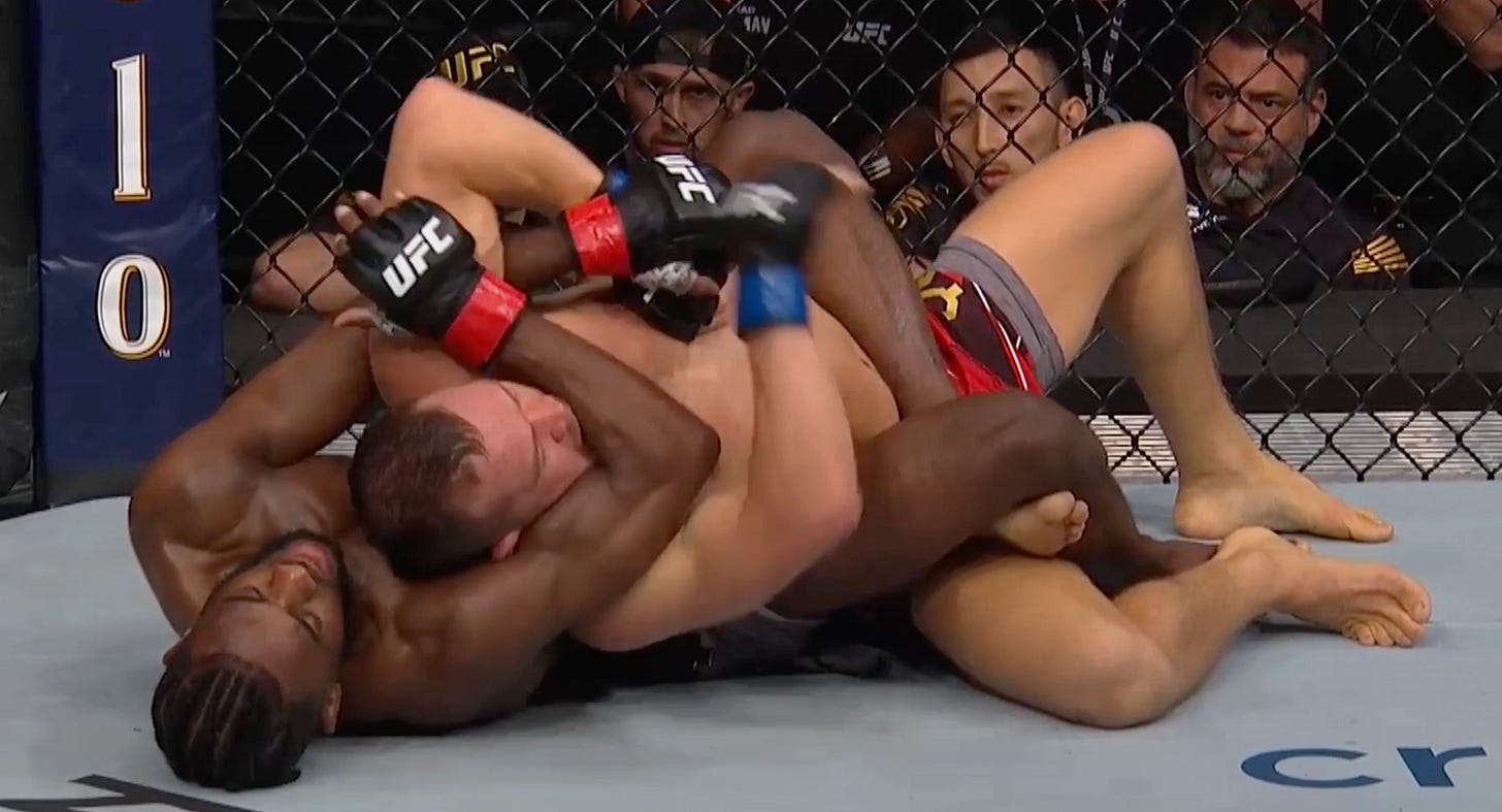 In his rematch with Petr Yan, Sterling’s insistent body work and stubborn back control had Yan fatigued in the later rounds. Though Sterling was more tired, it was this initial work on the back that aided him in surviving Yan’s admirable efforts throughout the 4th and 5th.