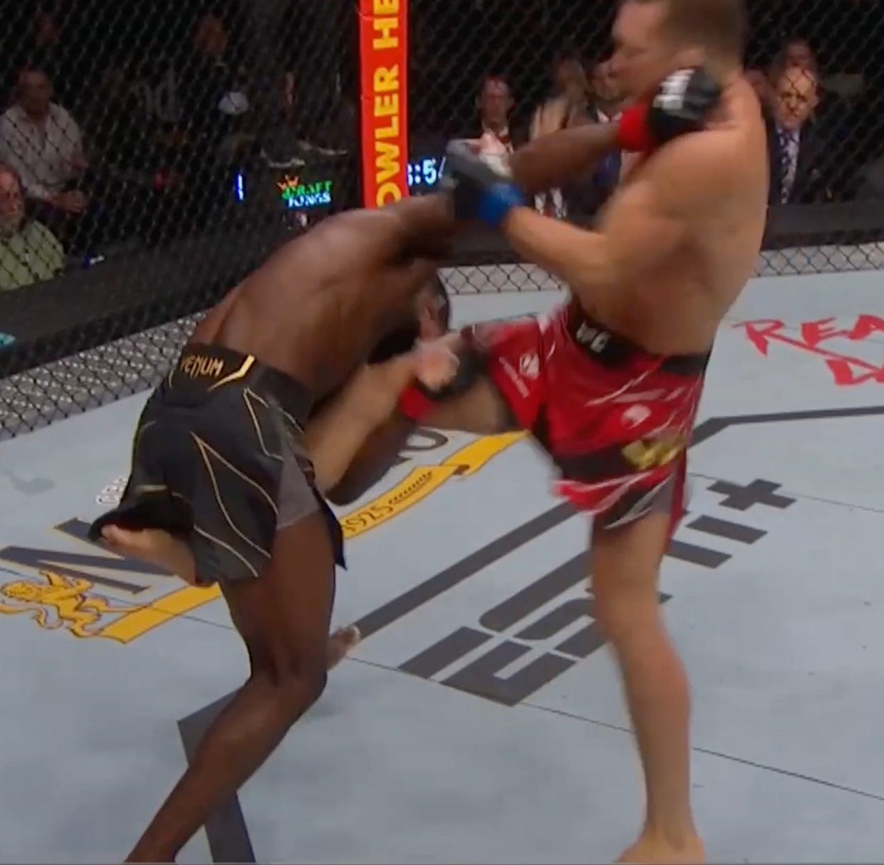 Sandhagen throws a kick, promptly caught by Sterling