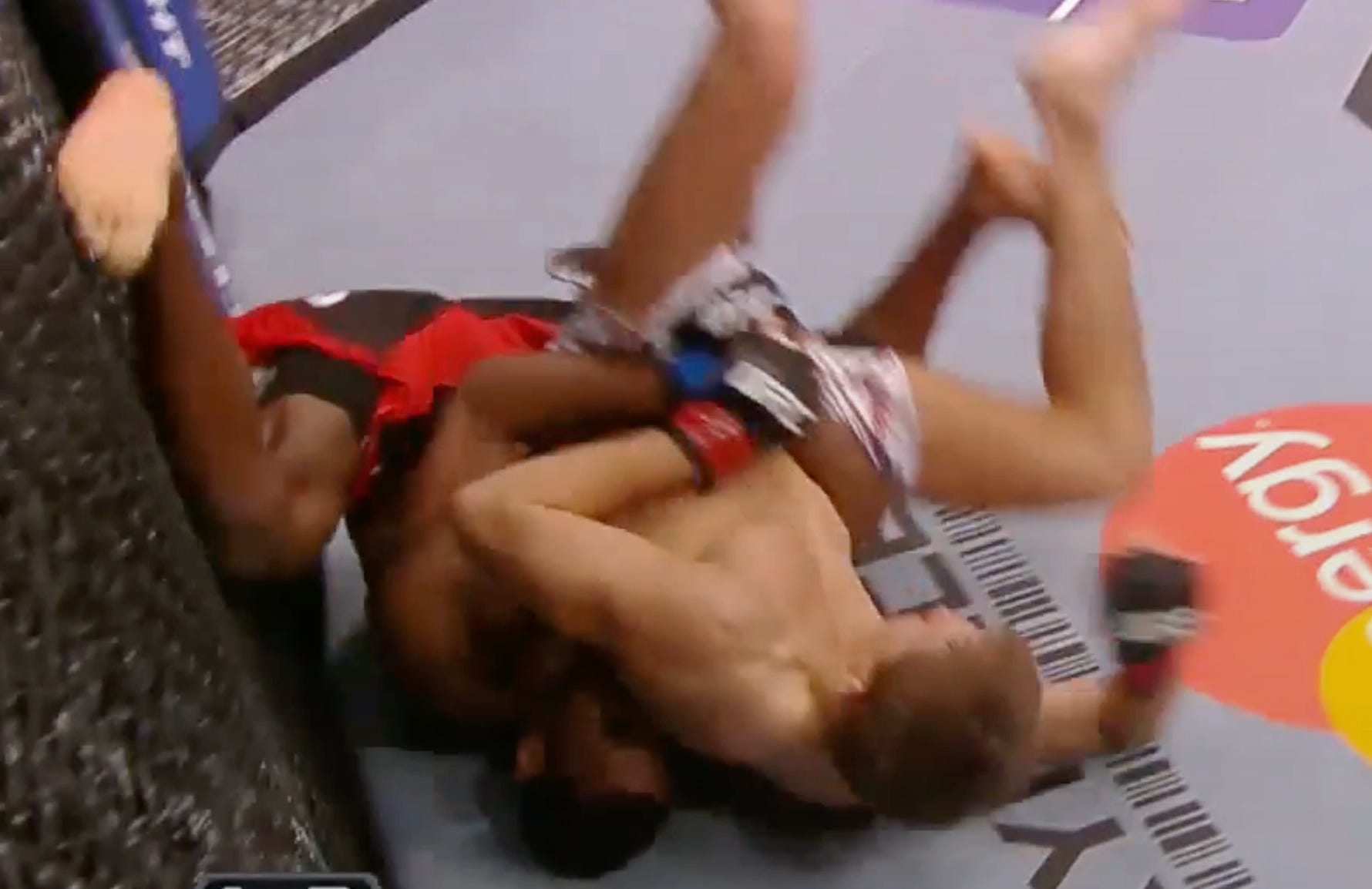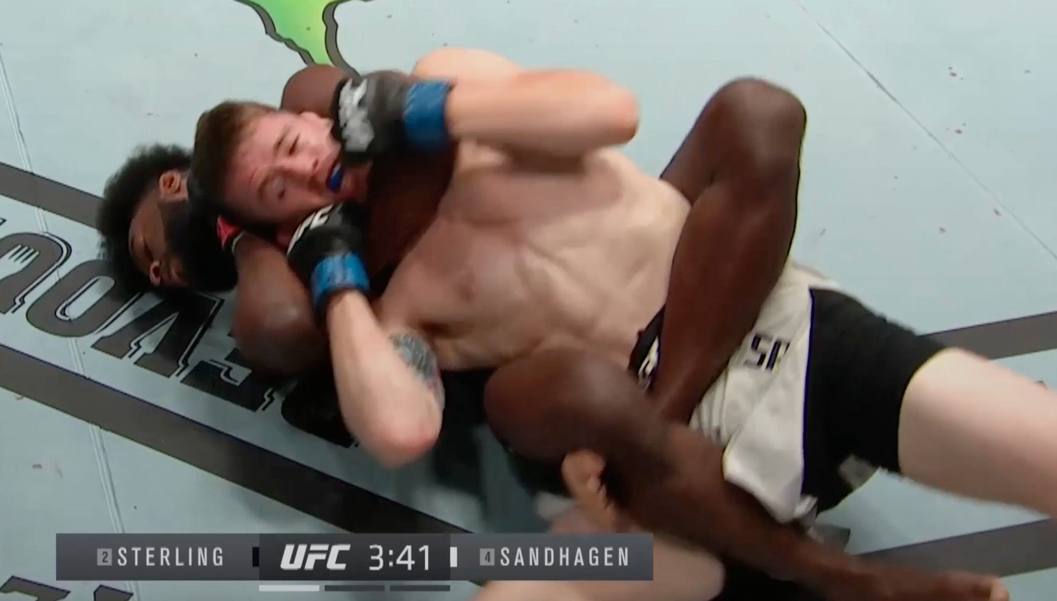 If the opponent rolls to turtle or their side, Sterling will flatten the opponent out and start throwing huge punches to the head and body. Given his posture he can put a lot of power into these shots and if not the TKO, he will certainly force a reaction from the opponent to re-take traditional back control.